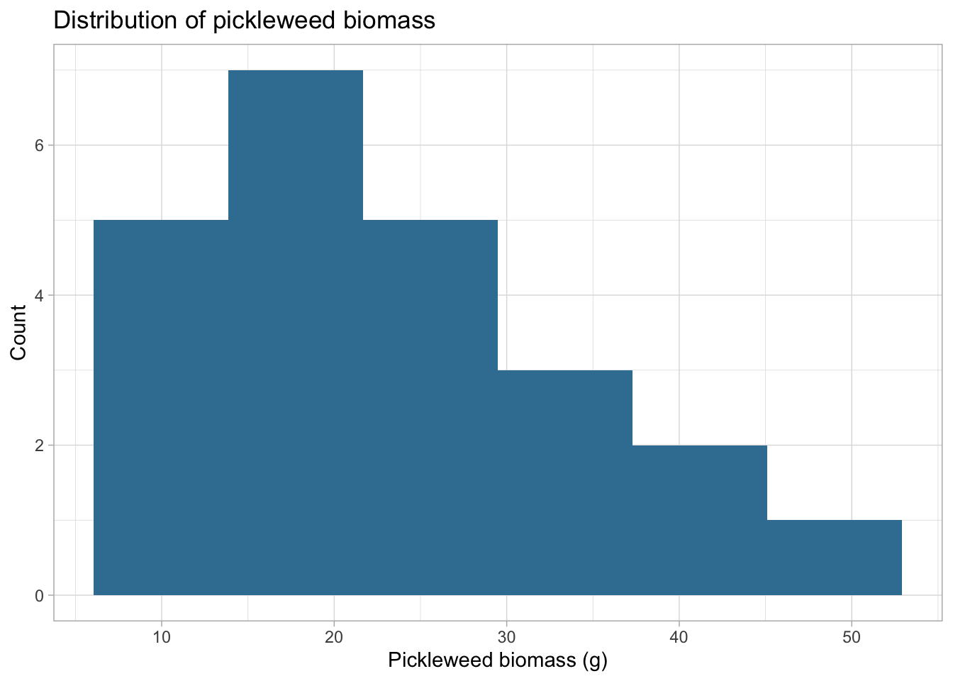 geom_histogram(fill = "#3b7ea1", bins = 6) +